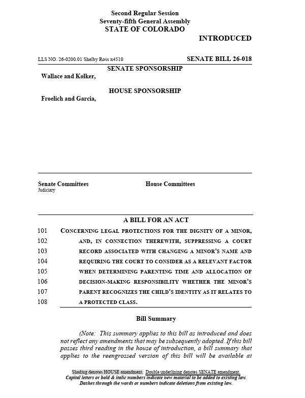 5-Bốn nghị sĩ Dân chủ tiểu bang Colorado đệ trình một dự luật cho phép trẻ em đổi tên, xóa bỏ các hồ sơ ghi lại việc đổi tên và cho phép tòa án tước bỏ quyền làm cha mẹ nếu họ không đồng ý việc đổi tên của con mình.